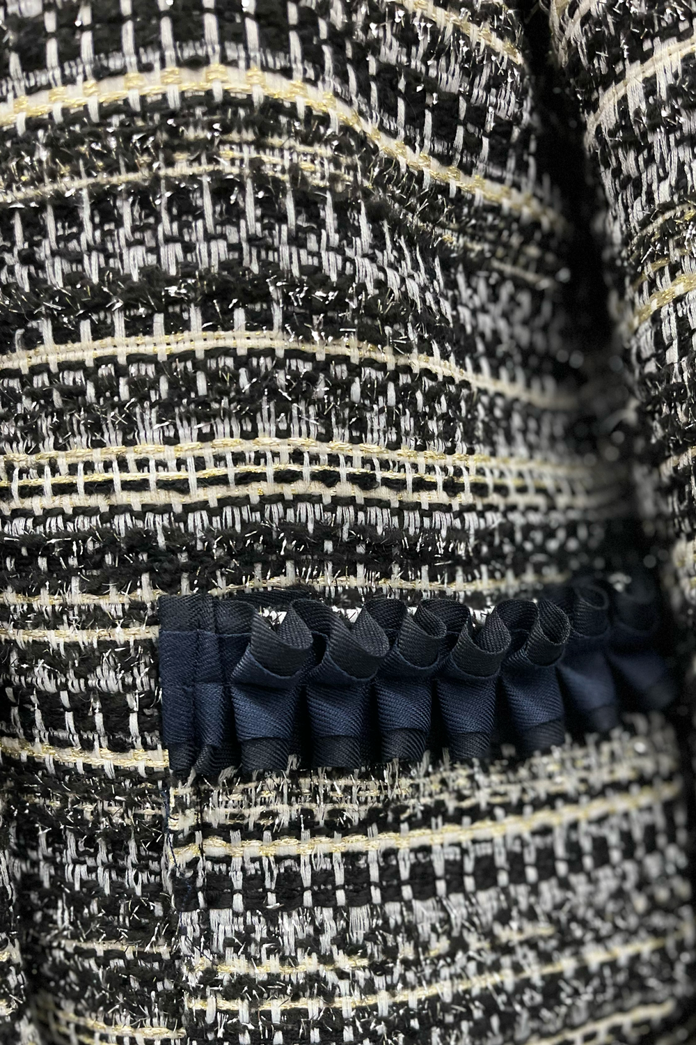 골드와 실버 실에 화려함과 주머니 주름 디테일로